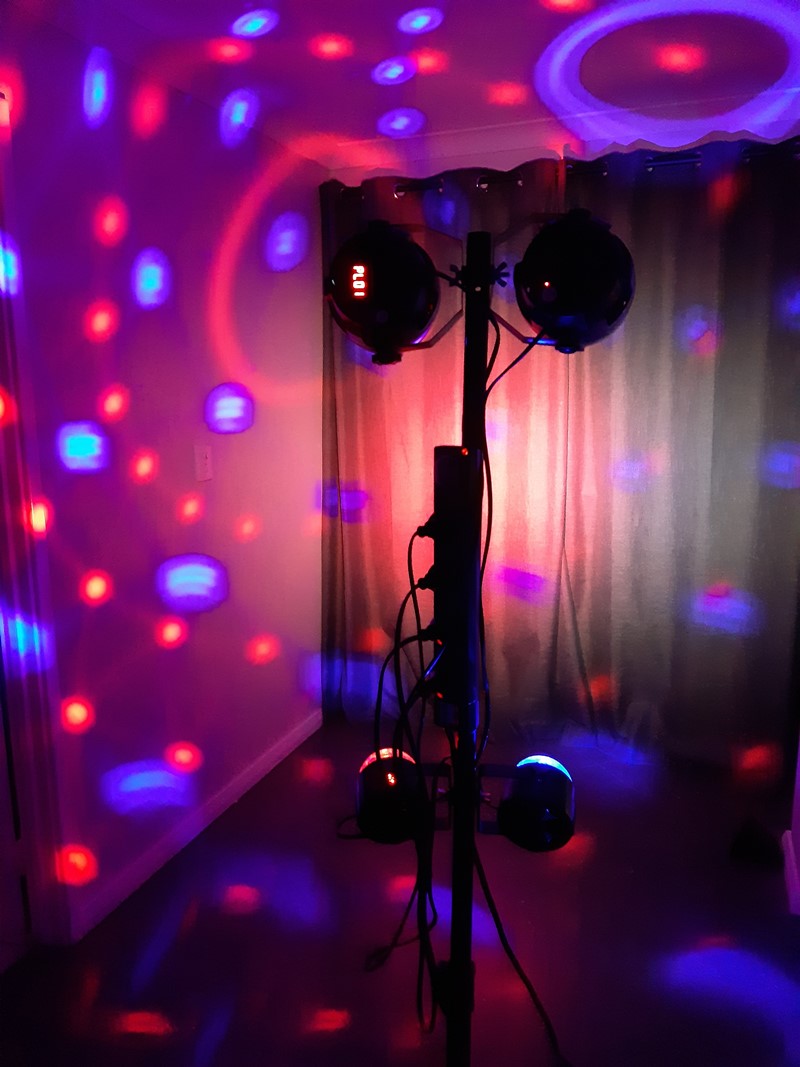 Party light hire price buster package, 4 quality lights all fitted to a stand $49. Less than a minute to setup and only requires 1 power point. Amazing !!